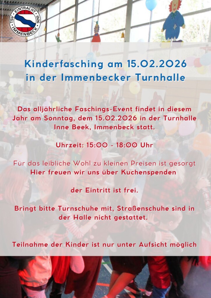 Das alljährliche Faschings-Event findet in diesem Jahr am Sonntag, dem 15.02.2026 in der Turnhalle statt.